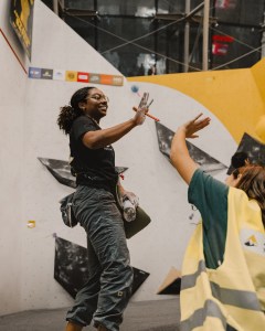 - Done on shorter walls (usually 3-5 meters high) without ropes, with padded mats for safety.